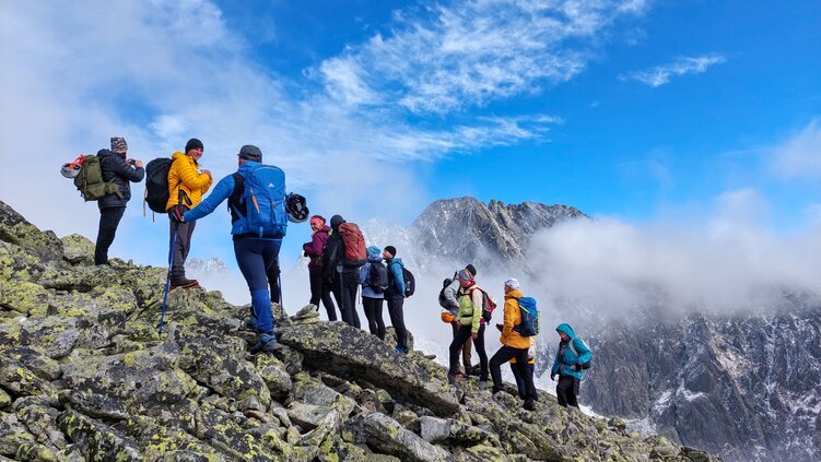 Túra začala dôkladnou prípravou a briefingom pri Popradskom plese. Prešiel som s klientmi celú trasu, vysvetlil im jednotlivé etapy výstupu a zopakoval bezpečnostné pokyny. Vždy dbám na to, aby moji klienti boli dobre pripravení a vedeli, čo ich čaká – od náročných úsekov až po dôležitosť pravidelného dopĺňania tekutín a energie. Bolo to malé zmiešané zoskupenie – od turistov so skúsenosťami vo vysokohorskej turistike až po tých, ktorí sa chceli popasovať s takouto túrou prvýkrát.