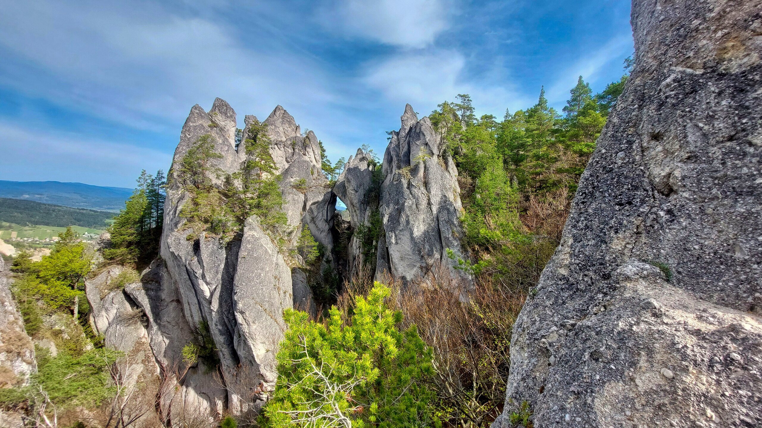 Prvou zastávkou bolo známe Kamenné okno, prírodný skalný oblúk pripomínajúci gotickú bránu. Tento útvar patrí medzi najfotogenickejšie miesta v Súľovských skalách. Výhľad cez „okno“ na okolité bralá a lesy je naozaj pôsobivý a určite stojí za krátku zachádzku.